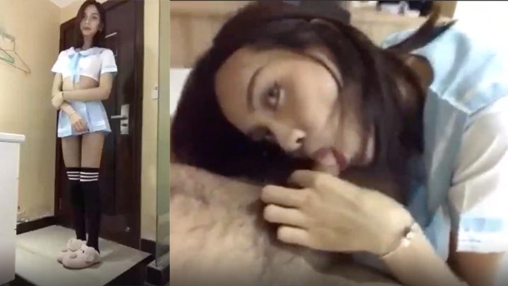 学生装水手服吊带黑丝跪舔J8 沙发女上位啪啪猛摇 无套插入